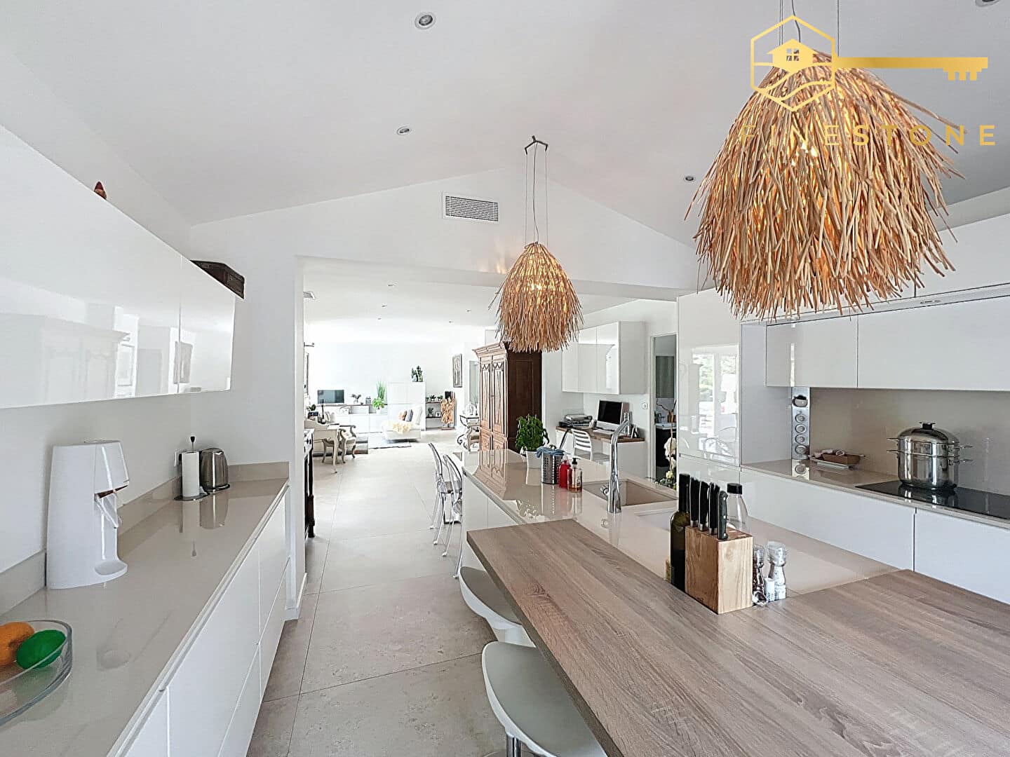 Elle comprend 4 pièces dont 2 chambres spacieuses de plain-pied et un studio indépendant; une cuisine haut de gamme, ouverte sur l’espace de vie, aménagée et très bien équipée; un séjour très lumineux; un espace salle à manger; une salle de bain, une salle d’eau et 2 WC dont un indépendant.