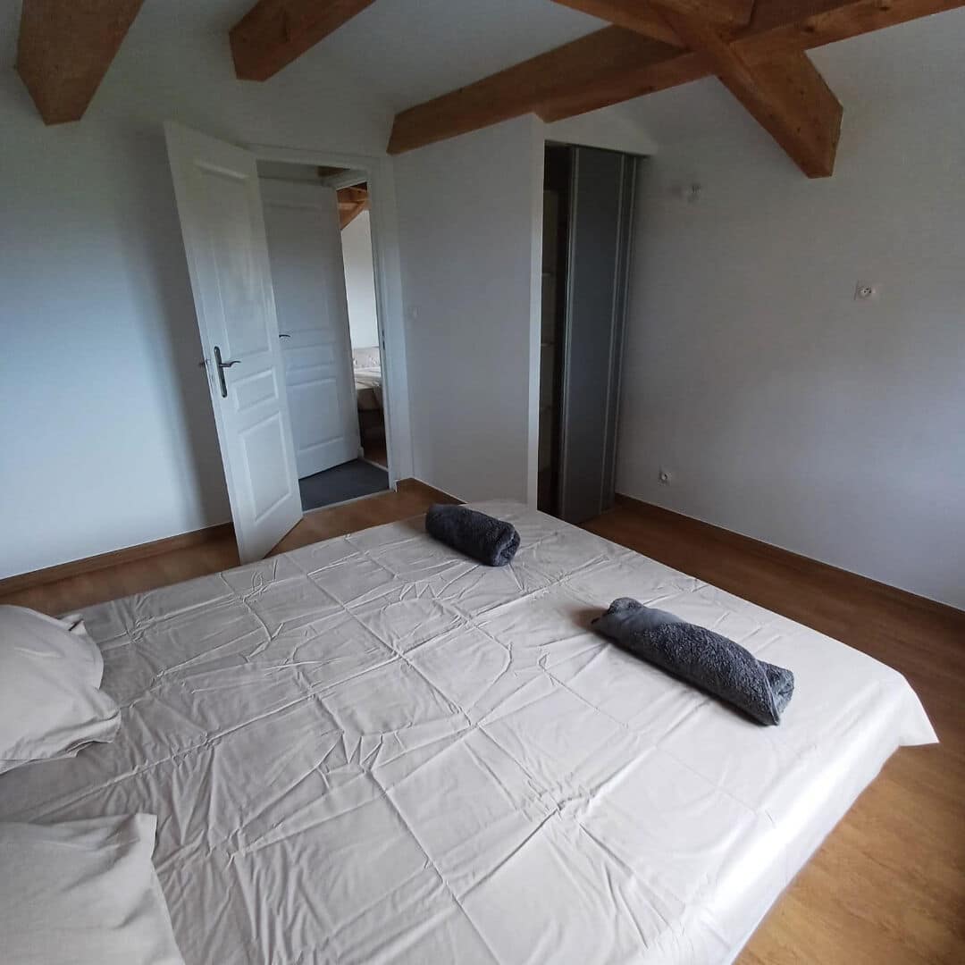 – A l’étage : un appartement T3 en duplex, avec un séjour lumineux et deux chambres à l’étage, offrant un espace de vie agréable.