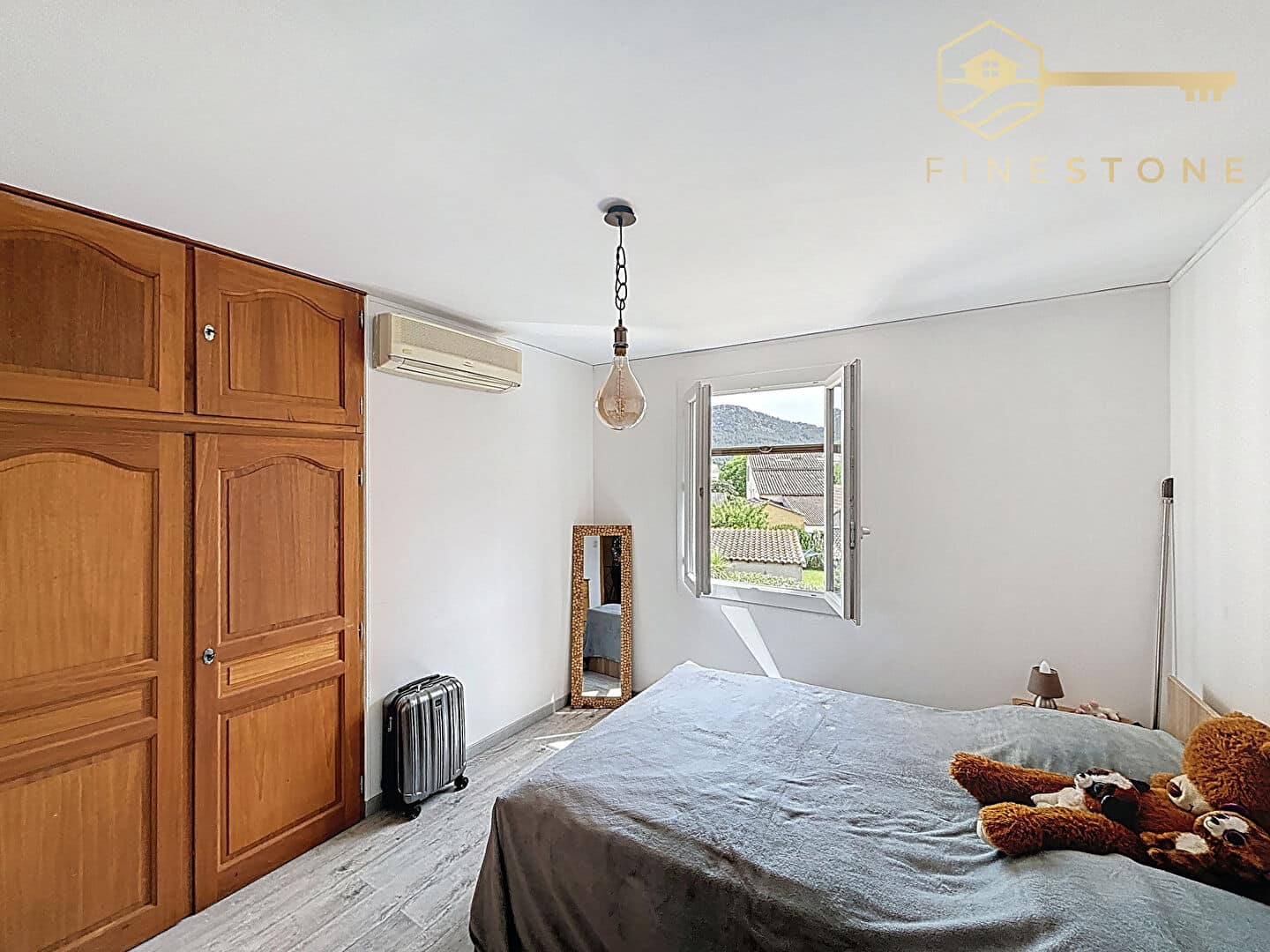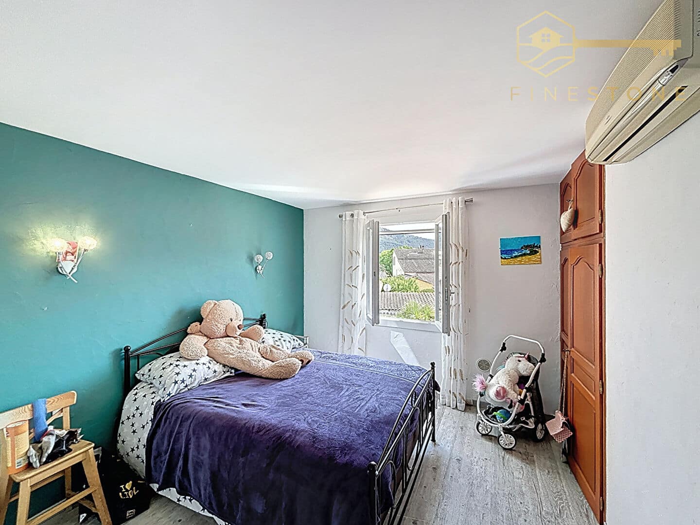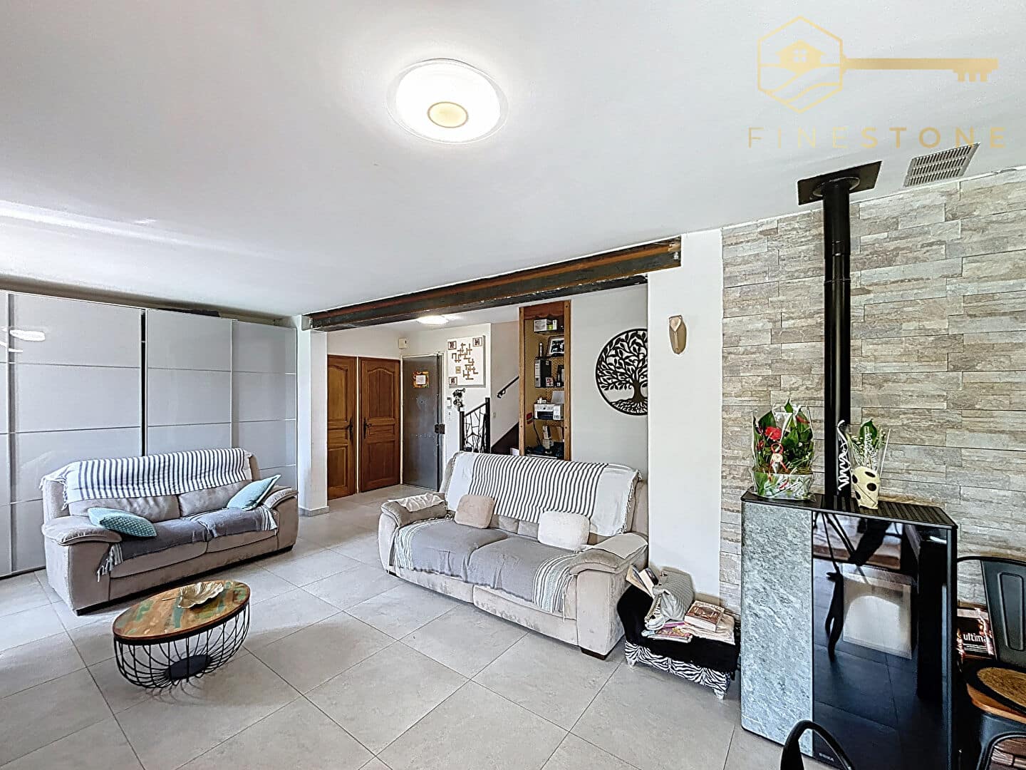 Édifiée sur un terrain de 452 m², elle offre un bel espace de vie agrémenté d’un poêle à granulés et d’un système de climatisation pour un confort optimal en toutes saisons.