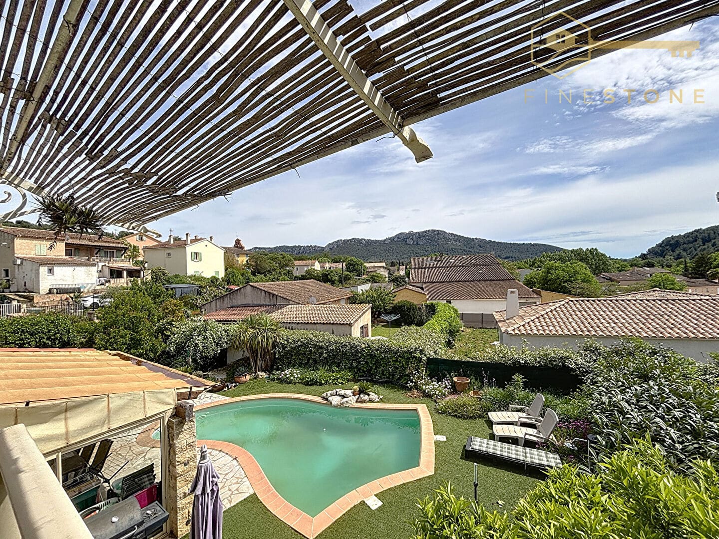 A l’extérieur, profitez d’un agréable jardin avec piscine au sel, alimentée par un puits, parfait pour vos journées d’été en toute sérénité.